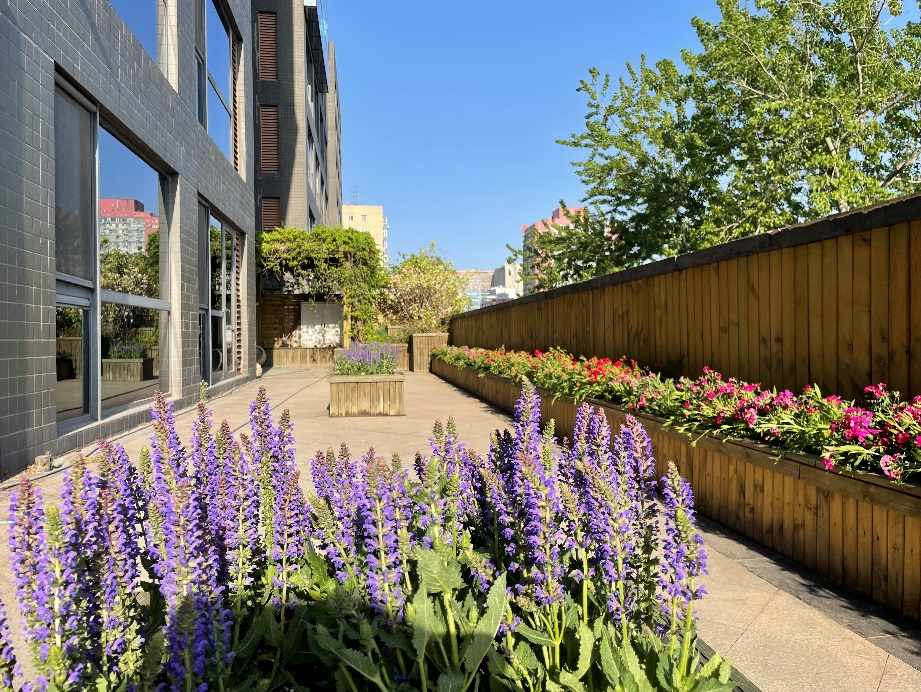 常言道人間最美四月天,在這陽光明媚,溫度宜人,生機盎然的時節(jié),位于B座3層南側的露臺,仿佛只一日的功夫便被春風變成了斑斕錦簇的所在。
