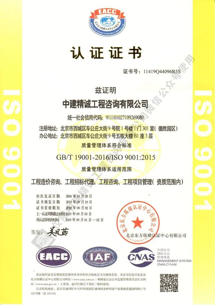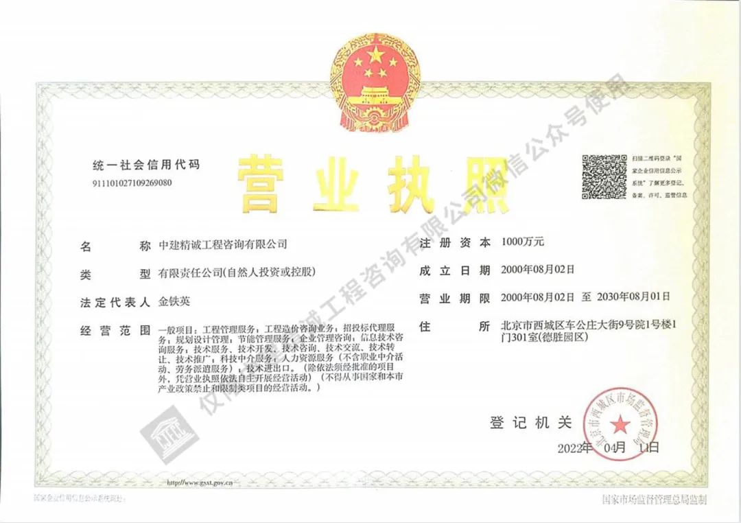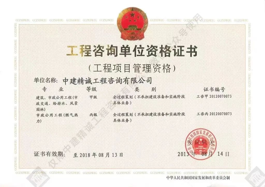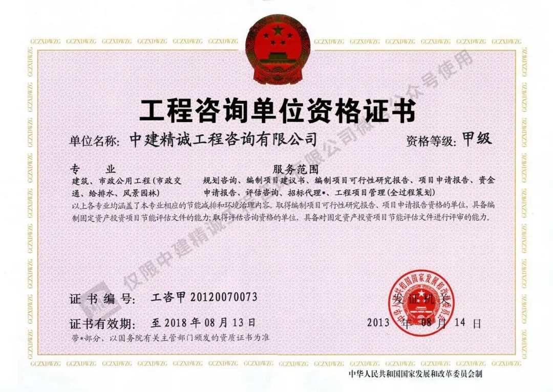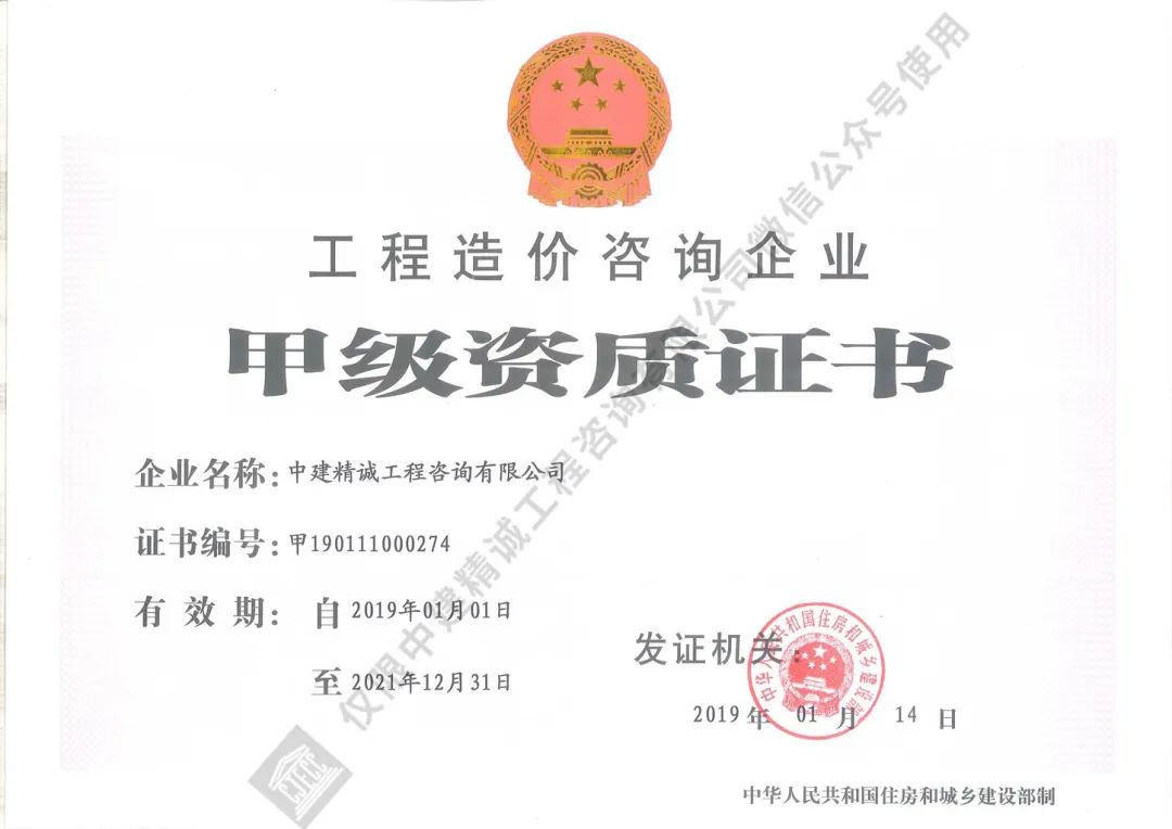 工程造價咨詢企業(yè)甲級資質(zhì)證書(原)