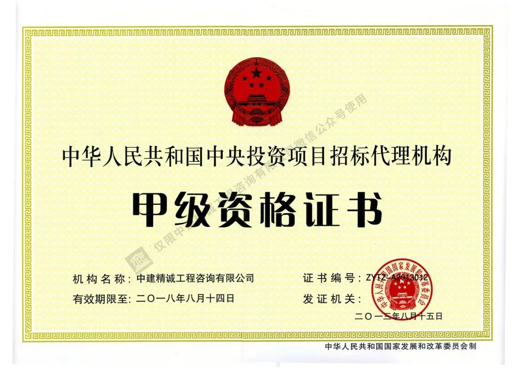 工程招標代理機構(gòu)甲級資質(zhì)證書(原)